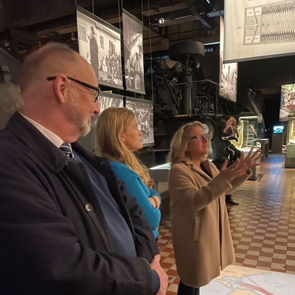 Entwicklungshilfeministerin Svenja Schulze, MdB Josephine Ortleb und unser RM Frankophones Afrika Karsten Deetz bei der Ausstellung „The true size of Africa“ im Weltkulturerbe Völklinger Hütte