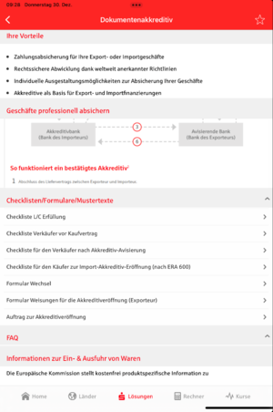 Die S-Lösungen bieten ebenso umfangreiche Informationen, Formulare und Mustertexte zu unterschiedlichen Garantiearten und Außenhandelsfinanzierungen.