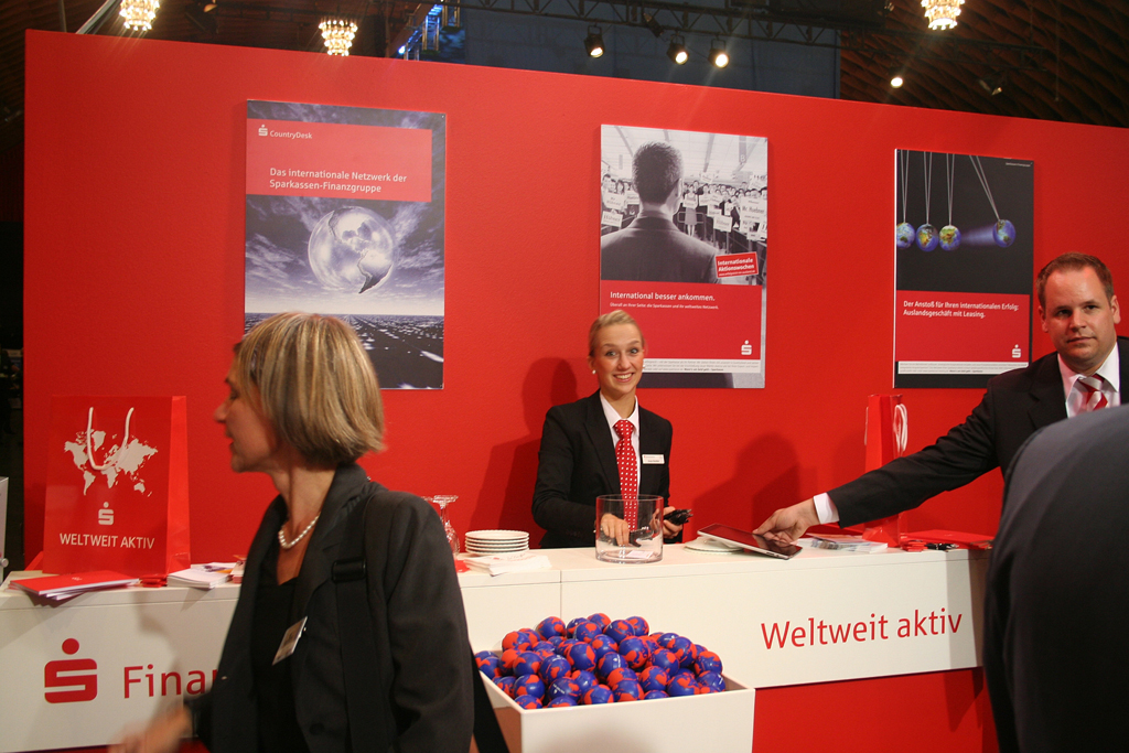 Ob Wegbegleiter bei ersten Schritten ins Ausland oder Problemlöser nach diesen Schritten: Ihre Sparkasse vor Ort kann dies alles sein! Der 6. IHK-Außenwirtschaftstag bot der Sparkassen-Finanzgruppe und Ihrem Standpartner S-CountryDesk eine geeignete Plattform um diese Botschaft den ca. 800 Besuchern zu überbringen. Ein auffallend roter Stand und besonders "gut.er" Kaffee luden interessierte Unternehmer und AHK Vertreter zum Verweilen ein. Dabei konnte das Beraterteam der nordrhein-westfälischen Sparkassen, der Deutschen Leasing und WestLB- allesamt Mitglieder im S-CountryDesk- Hilfestellung in Auslandsfragen geben. Der eine oder andere schien außerdem recht überrascht, was die Sparkassen im Ausland leisten können.