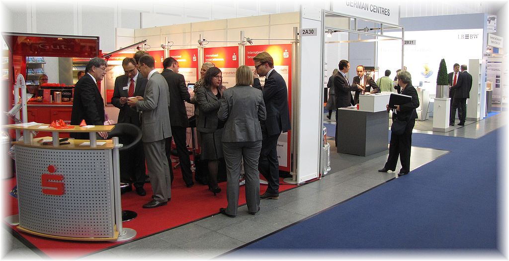 Rede und Antwort stand neben den Vertretern unserer Gesellschafter-Sparkassen Ludwigsburg, Esslingen-Nürtingen, Heilbronn sowie der Landesbank Baden-Württemberg auch der S-CountryDesk. Der Nachbarstand der German Centres rundete den eindrucksvollen Auftritt der Sparkassen-Finanzgruppe ab.